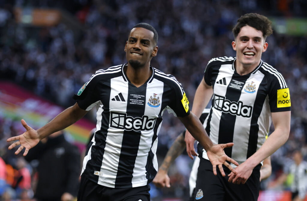 LONDON, ENGLAND - MARCH 16: Alexander Isak of Newcastle United F.C.celebrate after scoring a goal during the Carabao Cup Final between Liverpool and Newcastle United at Wembley Stadium on March 16, 2025 in London Imago Images
